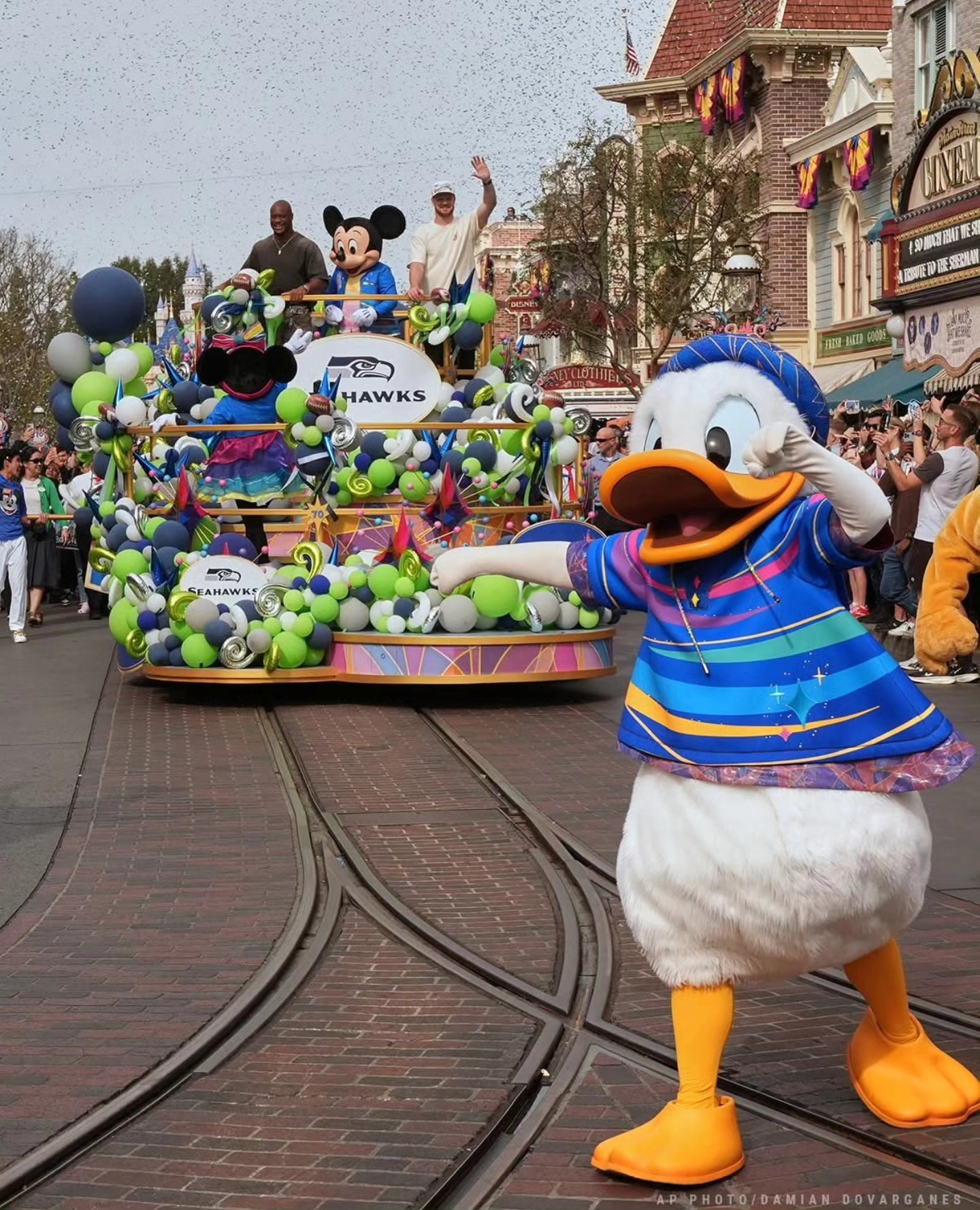 Tras la contundente victoria de los Seattle Seahawks por 29-13 sobre los New England Patriots en el Levi’s Stadium, las dos figuras más brillantes del encuentro, Sam Darnold y Kenneth Walker III, aterrizaron en Anaheim, California, para protagonizar el desfile triunfal en Disneyland Resort.
