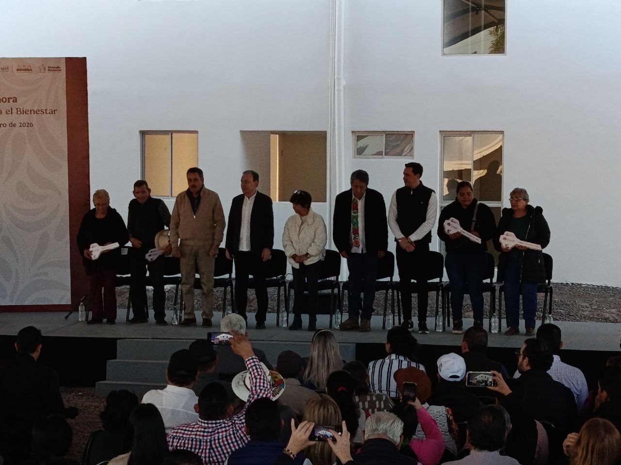 Las Viviendas del Bienestar tienen el propósito de beneficiar a las personas más vulnerables, especialmente aquellas con menores ingresos y a las y los adultos mayores, informó el alcalde de Cajeme, Javier Lamarque Cano, durante el evento de entrega de casas en el sur de Ciudad Obregón.