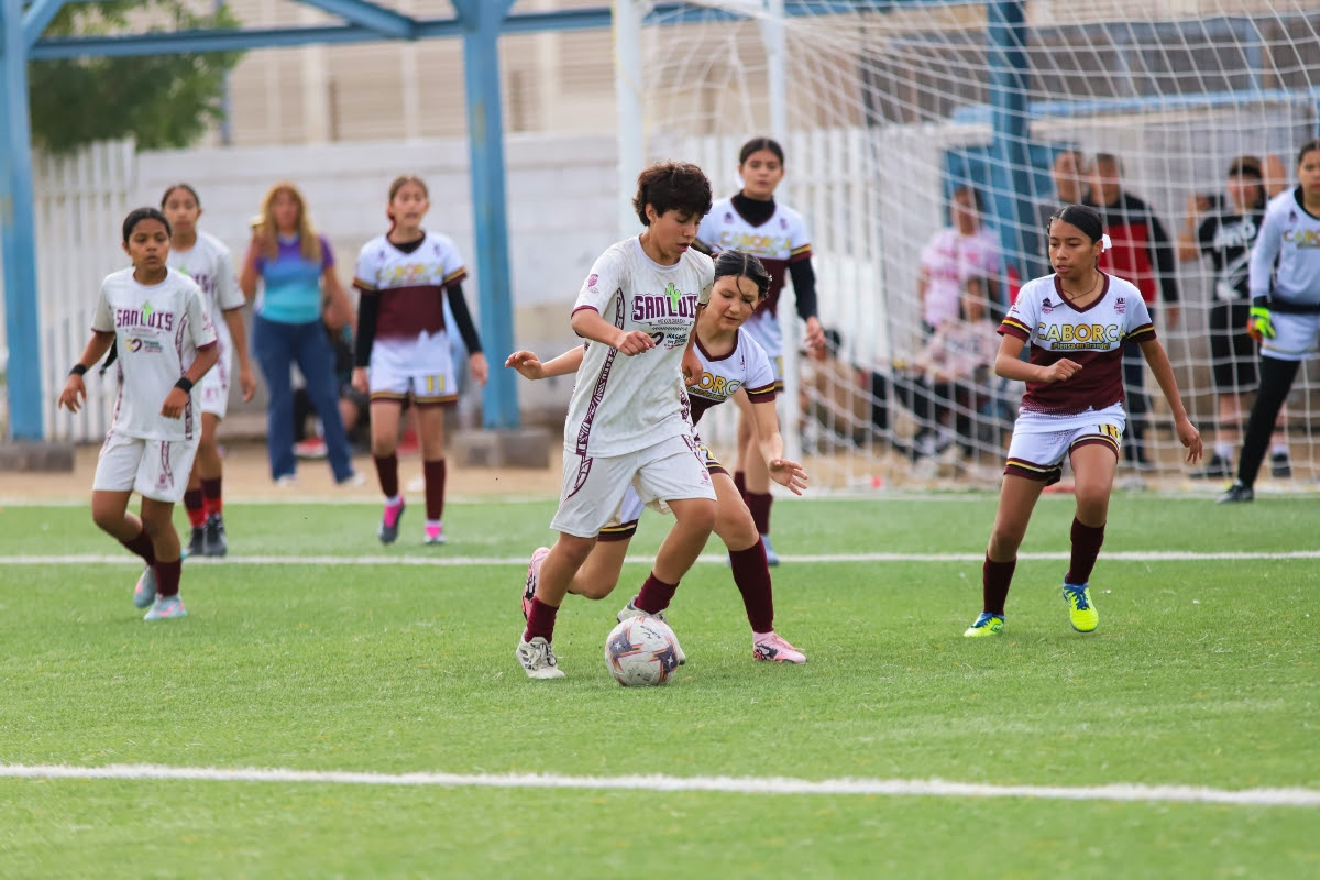 En la primera final, efectuada en el campo 2 del “Joss”, San Luis Río Colorado conquistó el gallardete de la categoría Sub 14 femenil, mediante una poderosa demostración ofensiva, tras derrotar 5-0 a Caborca, con una gran actuación de Ángela Rangel, quien clavó dos goles, escoltada por anotaciones de sus compañeras Alicia López, Anair Silva y Sofía Piedras.