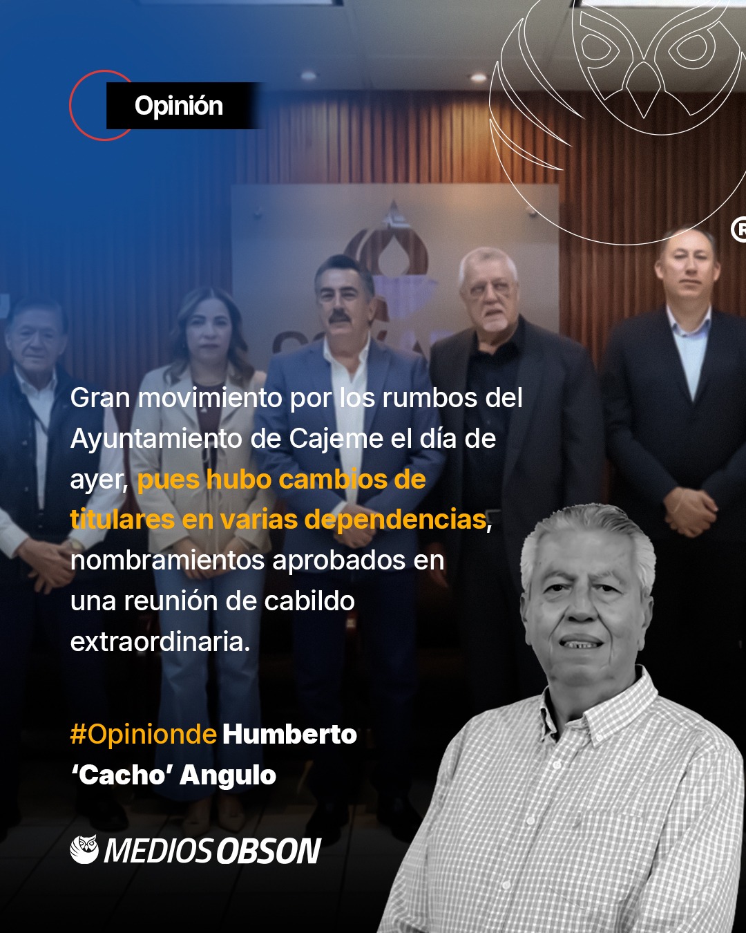 Gran movimiento por los rumbos del Ayuntamiento de Cajeme el día de ayer, pues participaron en un enroque varios funcionarios de primer nivel y algunos más de segundo, por principio de cuentas déjeme decirle que fueron removidos el titular del Organismo Operador del Agua Potable y Alcantarillado de Cajeme, LUIS ALBERTO RUIZ CORONADO sustituyéndolo en ese cargo el Ing. JOSÉ LUIS PABLOS MONTES, quien se venía desempeñando como titular del Catastro de Cajeme. A JOSÉ LUIS PABLOS le conoce bien el alcalde pues laboró para él la primera ocasión que fue alcalde y cerró como titular de esa dependencia, pero además fueron también ambos colaboradores en la administración de ANDRÉS MANUEL LÓPEZ OBRADOR en la ciudad de México, LUIS ALBERTO pasa a ser el nuevo titular del Órgano de Control y Evaluación Gubernamental, mejor conocida como Contraloría, mientras que al catastro municipal llega el Arq. ÓSCAR SÁNCHEZ quien tiene una larga trayectoria en el servicio público cajemense.