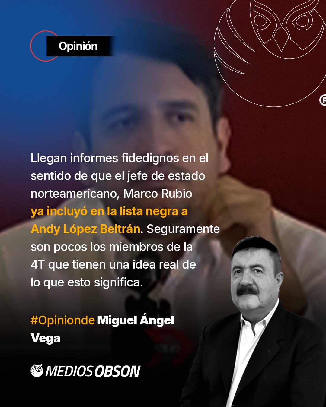 Por lo que vemos el gobierno de Estados Unidos, encabezado por DONALD TRUMP, no quita el dedo del renglón sobre el gobierno de México, toda vez que nos llegan informes fidedignos en el sentido de que el jefe de estado norteamericano, MARCO RUBIO ya incluyó en la lista negra a ANDY LÓPEZ BELTRÁN, como cabecilla del robo de combustible, el huachicol fiscal y sus vínculos con el crimen organizado y que incluso ya se dio la orden para que en su momento lo cacen como liebre en nuestro país o a donde vaya y en lo que hemos visto a Trump le vale un cacahuate eso de la soberanía que tanto defiende nuestra presidenta CLAUDIA SHEINBAUM PARDO. Seguramente son pocos los miembros de la 4T que tienen una idea real de lo que esto significa, toda vez que cayendo Andy, se destaparía la cloaca más grande de delincuencia en la historia de nuestro país y por supuesto que seguirían cabezas de la talla de ANDRÉS MANUEL LÓPEZ OBRADOR, sus hijos GONZALO Y JOSÉ RAMÓN LÓPEZ BELTRÁN, así como una lista larga de cabezas principales de este gobierno, entre las que se encuentran varios gobernadores, funcionarios en activo, legisladores de todas las cámaras. Por supuesto que es de considerarse que Andy no solo debe cuidarse de no ser capturado por el gobierno gabacho, sino de quienes integran estas redes delincuenciales que podrían optar por callarlo como callaron al marino FERNANDO RUBÉN GUERRERO, porque sabía demasiado en torno a ese huachicol y lo denunció ante el secretario de Marina RAFAEL OJEDA DURÁN y horas después lo rociaron de plomo en Colima. Lo cual encierra un misterio tan claro como el agua. Así que lo mas seguro es que en pocos días, tengamos noticias bomba en torno a esto de que Andy ya es uno de los principales objetivos del gobierno gringo, porque a como hemos visto las cosas a Trump no le interesa el nivel del personaje y posiblemente en estos momentos ya estén estudiando y preparando el operativo quirúrgico para llevárselo sin ocupar pasaporte ni visa. De la misma forma se dice que al que ya le faltan unos días o posiblemente horas para que caiga es al dictador de Cuba MIGUEL DÍAZ CANEL BERMÚDEZ, porque la situación en la isla se le está complicando cada día más, porque no hay combustible ni alimentos, por lo que mucha gente ya no haya la puerta y se planea una revuelta social en su contra para que caiga y se implante un gobierno democrático para que los cubanos vuelvan a la vida. Y ojo con las traiciones, porque mirábamos en las noticias que DELCY RODRÍGUEZ, actual presidente de Venezuela, acaba de sostener una reunión de lo más tersa con altos funcionarios de Estados Unidos, para analizar la forma como se gobernará ese país y elevar el nivel de vida de sus habitantes, como si nada hubiera pasado. Con esto se deducen dos cosas: Una, que la mujer traicionó a NICOLÁS MADURO MOROS entregando datos para que lo detuvieran con mayor facilidad. O la otra, que de plano le haya caído el 20 que con EU sencillamente no se puede y se haya doblegado para trabajar en sana paz. En tanto el exdictador, se está volviendo loco en su encierro, pero así fueron las atrocidades que cometió embargado por el poder en su país de origen…………….. Con eso de la guerra de encuestas que ya se desató en el ámbito político, nos llega una en la que para la gubernatura Morena la encabeza con el 43.2 por ciento e intención del voto. De ahí le sigue el PAN con 19 por ciento; posteriormente está el PRI con 11.1 por ciento; enseguida Movimiento Ciudadano con 9.8 por ciento; después el Verde con 3.4 %. Le sigue el PT con 1.9 por ciento. Pero a la vez nos envían otra en la que se lee que de los cuatro principales contendientes que se han mencionado de Morena hasta el momento, CÉLIDA LÓPEZ CÁRDENAS encabeza la lista de las preferencias con el 34.2 por ciento; Luego le sigue JAVIER LAMARQUE CANO con el 23.5 por ciento; enseguida aparece LORENIA VALLE SAMPEDRO con el 21.5 por ciento y finalmente allá en el fondo con apenas el 10.7 por ciento, se observa al senador HERIBERTO AGUILAR CASTILLO. Y quien la envía sabemos que no está a favor de ninguno de los cuatro, asegurándonos que esa sí es una encuesta real, no como otras que las pagan quienes quieren salir ganadores. Y si nos brincamos al PAN, el que las encabeza es ANTONIO ASTIAZARÁN GUTIÉRREZ con un 38.6 por ciento; sobre LILLY TÉLLEZ que logra un 20.3 de intención del voto; en tanto DAMIAN ZEPEDA VIDALES tiene el 16.6 por ciento. En el caso del PRI, dice que el ex alcade de Cajeme, ROGELIO DÍAZ BROWN, cuenta con el 36.4 por ciento a su favor; seguido por ERNESTO GÁNDARA CAMOU con un 25.8 por ciento y SYLVANA BELTRONES SÁNCHEZ con el 22.5 a su favor en ese partido. En tanto de Movimiento Ciudadano encabeza la lista PATRICIA MERCADO con un 36.4 por ciento; MANUEL SCOTT con el 25.8 por ciento y ERNESTO DE LUCAS con el 22.5 por ciento. Pero ojo, ahí viene la más interesante. Cuando se le preguntó a la gente porque candidatos de todos estos votarían otra vez CÉLIDA LÓPEZ encabeza la lista con el 38.5 por ciento; en tanto TOÑO ASTIAZARÁN le sigue con 18.6 por ciento y MANUEL SCOTT con el 16.9 por ciento. De ese tamaño el asunto de la encuestitis que vivimos muy por adelantado en estos días, cuando nos faltan aún año y medio para las elecciones…………… No cabe duda que lo que siembras cosechas. Después de haberse hecho público el desastre que cometió con los libros de texto el comunista MARX ARRIAGA, muy amigo de doña BEATRIZ GUTIÉRREZ MÜLLER DE LÓPEZ y después que lo corrieron como director de materiales educativos de los libros de texto, tras anunciar que se regresaría a Chihuahua a dar clases en la Universidad Autónoma de esa entidad, resulta que al legar al aeropuerto internacional de Ciudad Juárez, cuando la gente se enteró que él es el que hizo el desastre, que corrieron de la SEP, le empezaron a gritar rechiflas y ofensas vergonzosas para cualquier ser humano normal, sin em