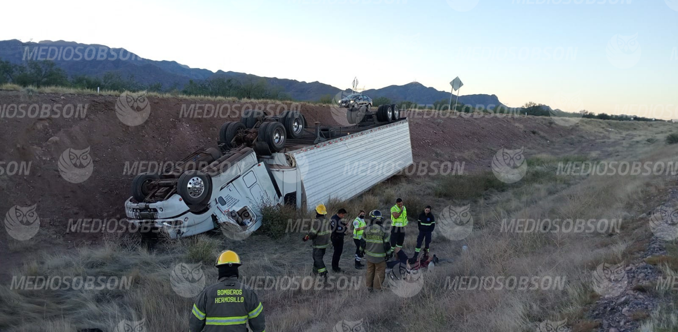 “Recibimos el reporte de un volcamiento de un tractocamión en la carretera Guaymas, kilómetro 201, aproximadamente alrededor de las 6:35 de la mañana… se trataba de un torton trailer con caja refrigerada con fruta, el cual el conductor salió lesionado con golpes en el tórax. A su llegada, la persona ya se encontraba fuera del vehículo y fue atendida por Cruz Roja; se cortaron los riesgos de incendio para retirar la unidad sin novedad.”