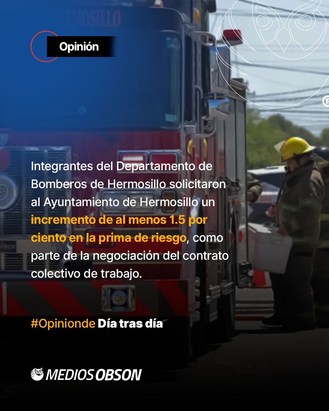 Integrantes del Departamento de Bomberos de Hermosillo solicitaron al Ayuntamiento de Hermosillo un incremento de al menos 1.5 por ciento en la prima de riesgo, como parte de la negociación del contrato colectivo de trabajo. El secretario general del sindicato, Jesús Fierros, explicó que este estímulo económico busca compensar la constante exposición a situaciones de peligro que enfrentan los elementos en el cumplimiento de sus funciones. La prima de riesgo representa un incentivo adicional al salario destinado a trabajadores que desempeñan labores en condiciones de alta vulnerabilidad, por lo que los bomberos consideran que el ajuste solicitado sería un reconocimiento justo a la naturaleza de su actividad. La petición fue presentada durante una reunión con autoridades municipales en el marco de la revisión contractual, y los representantes sindicales manifestaron confianza en que la administración analizará la propuesta con apertura. El planteamiento se da en un contexto donde distintos gremios buscan fortalecer sus condiciones laborales mediante revisiones salariales y prestaciones acordes a sus responsabilidades.