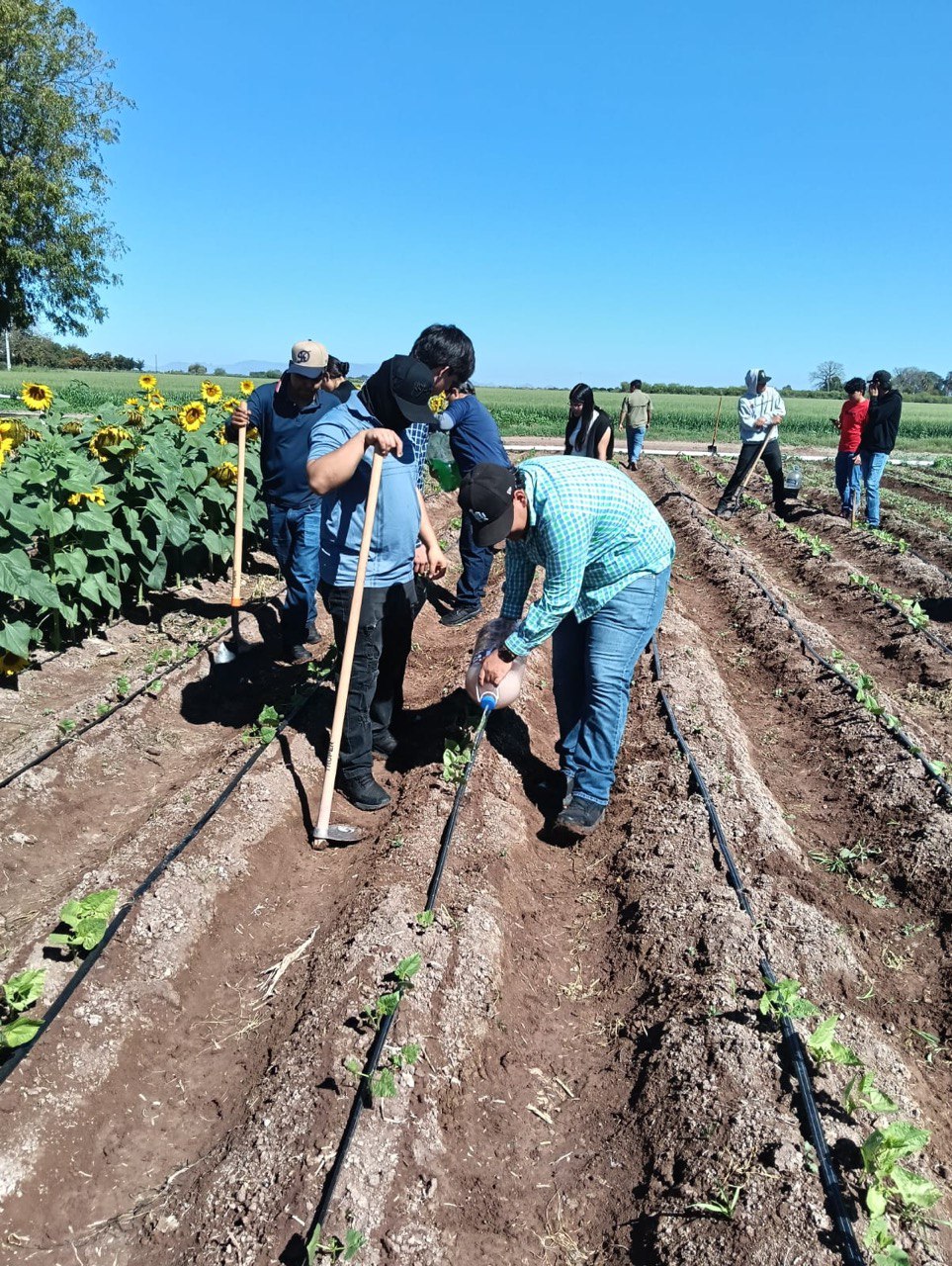 Esta práctica es bajo un sistema de riego por goteo, con el objetivo de optimizar el uso del agua y reducir costos de producción, formando parte de su formación académica, que les permite aplicar conocimientos teóricos directamente en campo.