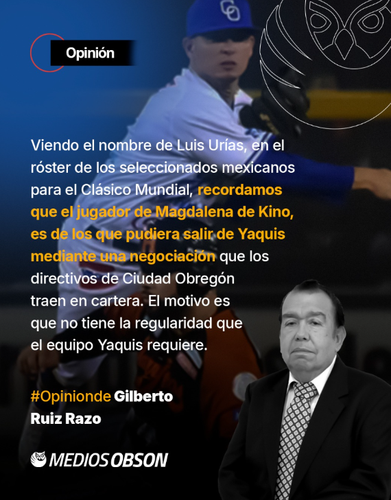 LIBRE.- Viendo el nombre de Luis Urías, en el róster de los seleccionados mexicanos para el Clásico Mundial, recordamos que el jugador de Magdalena de Kino, es de los que pudiera salir de Yaquis mediante una negociación que los directivos de Ciudad Obregón traen en cartera. El motivo debe ser que el apodado “Güicho” que es jugador de cuadro, no reporta con la regularidad que el equipo Yaquis requiere. Y, aprovechando que no tiene equipo en MLB y su regreso a la pelota de invierno sería más factible, podría interesar a alguien.