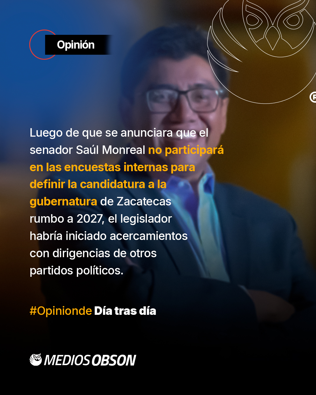Luego de que la dirigente nacional de Movimiento Regeneración Nacional, Luisa María Alcalde, anunciara que el senador Saúl Monreal no participará en las encuestas internas para definir la candidatura a la gubernatura de Zacatecas rumbo a 2027, el legislador habría iniciado acercamientos con dirigencias de otros partidos políticos, entre ellos el Partido Revolucionario Institucional y Movimiento Ciudadano, con el objetivo de buscar la postulación fuera del partido guinda. De acuerdo con versiones difundidas en círculos políticos, el menor de la familia Monreal estaría dispuesto a competir por la gubernatura sin importar las siglas que lo respalden, pese a que la presidenta de México, Claudia Sheinbaum Pardo, le sugirió recientemente esperar al siguiente proceso electoral al considerar que aún tiene tiempo para buscar ese cargo. En este escenario, queda por verse si el senador logra concretar una candidatura y si su figura podría competir frente a la estructura política de Morena en la entidad.